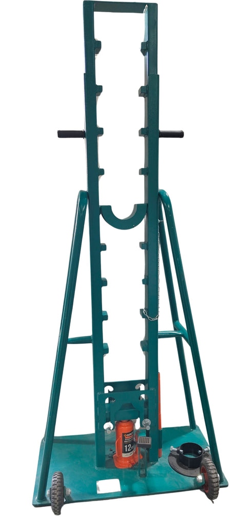 and using Solid Carbon Steel Spindle with both end locking collar to fix the drum properly and safely. The key feature of this jack is the hydraulic mechanism, which allows for smooth and controlled lifting of cable drums. Lifting of the cable drum is controlled by foot pedal. Frame made with heavy duty steel.