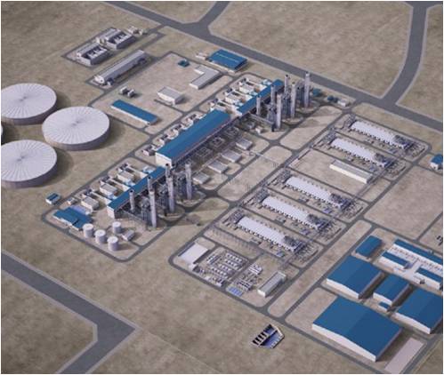 Combined Cycle power plant producing of 2.52GW of electricity and 590,000m³ (136 million gallons) of drinking water a day to 2.5m homes in the area.