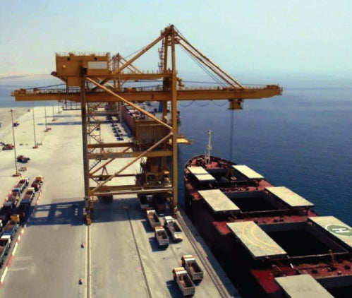 34 million tonne per year port facility containing 22km of covered conveyers with 7 unloading cranes. The site covers 1,000,000 sqm
